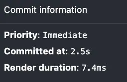 当没有选择任何组件时(放大),它会显示当前在commit过程中的commit概况。数据包括**commit的时间(自应用程序启动以来),渲染的时间,以及优先级**。